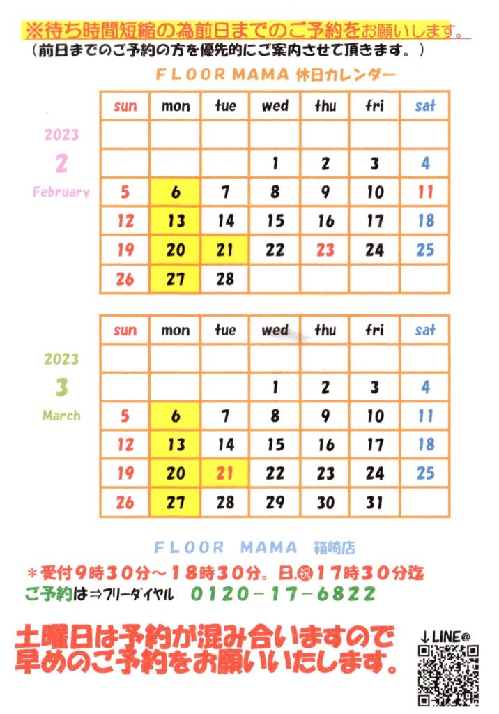 と通常通りの休みとなっています。 ご確認の上、ご予約ご来店お願い致します。