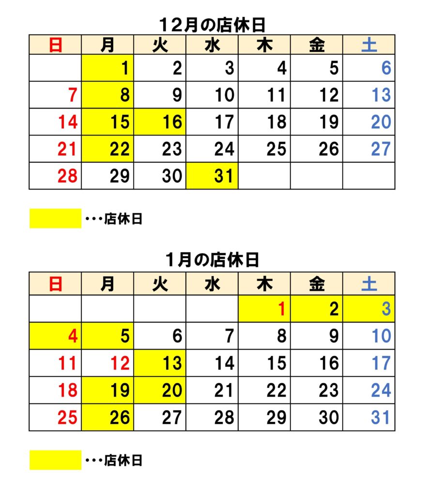 👉 12/29(月)と 1/12(月・祝)は 営業します!