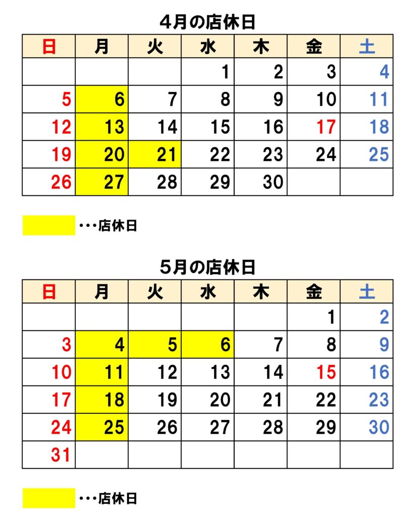 📌4月の店休日