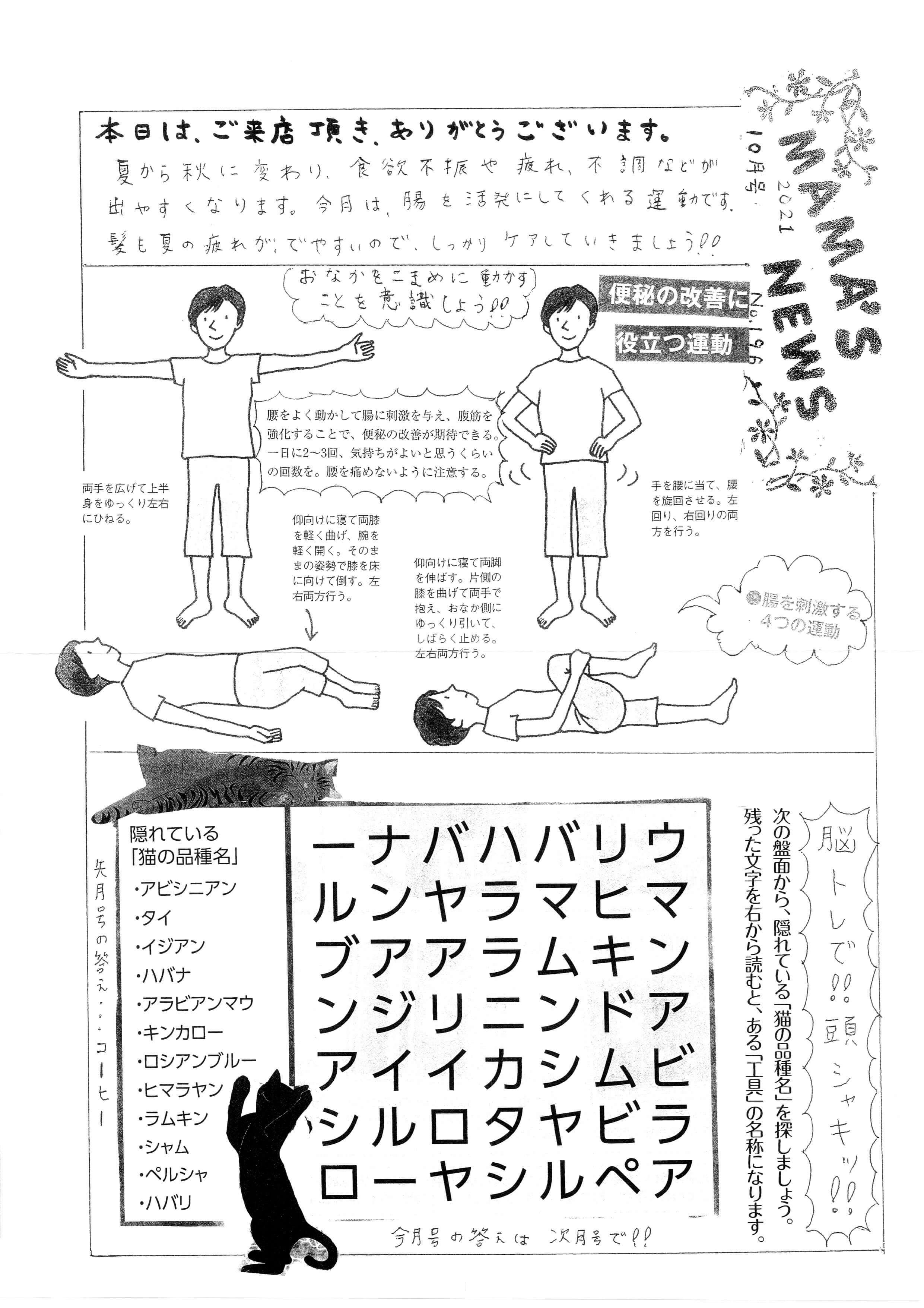 「毎月発行しているフロアママの新聞(2021年10月号)です」